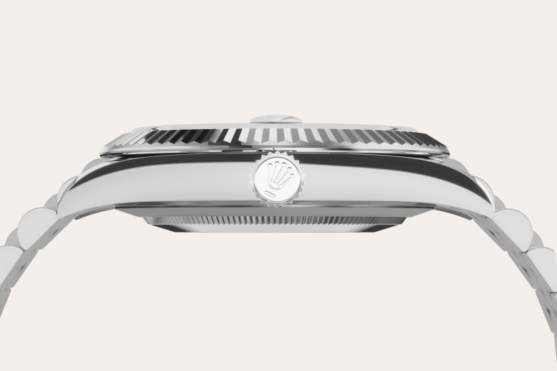 The Rolex fluted bezel is a mark of distinction. Originally, the fluting of the Oyster bezel had a functional purpose: it served to screw the bezel onto the case helping to ensure the waterproofness of the watch. It was therefore identical to the fluting on the case back, which was also screwed onto the case for waterproofness, using specific Rolex tools. Over time, the fluting became an aesthetic element, a genuine Rolex signature feature. Today the fluted bezel is a mark of distinction, in gold on this Datejust 41.